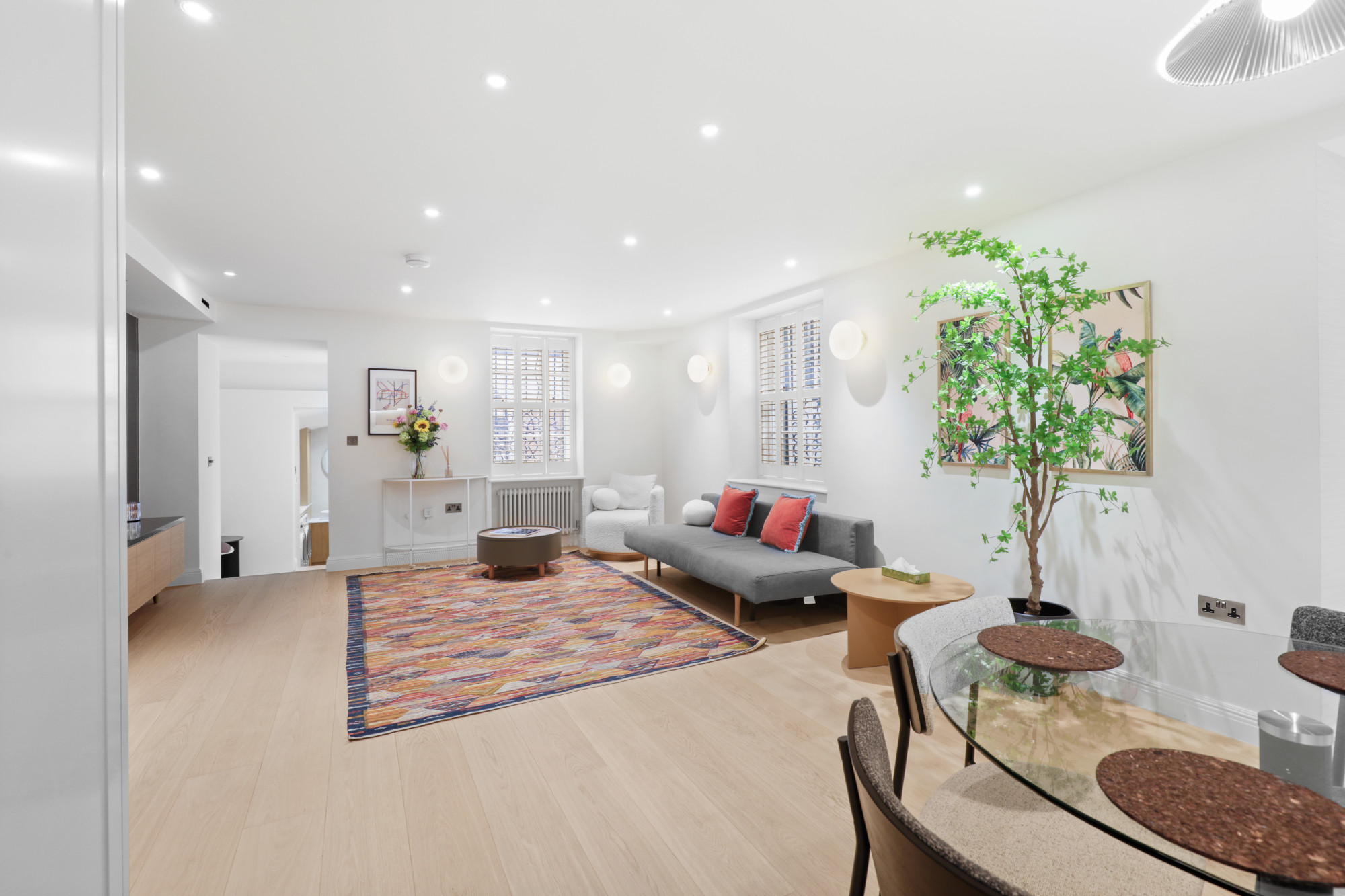This stylish 1-bed basement flat offers modern comfort with luxury features, just moments from Paddington Station and Hyde Park. The bright open-plan living/dining area includes a fully equipped kitchen with breakfast bar, and opens onto two small patio areas — perfect for a morning coffee or fresh air break.